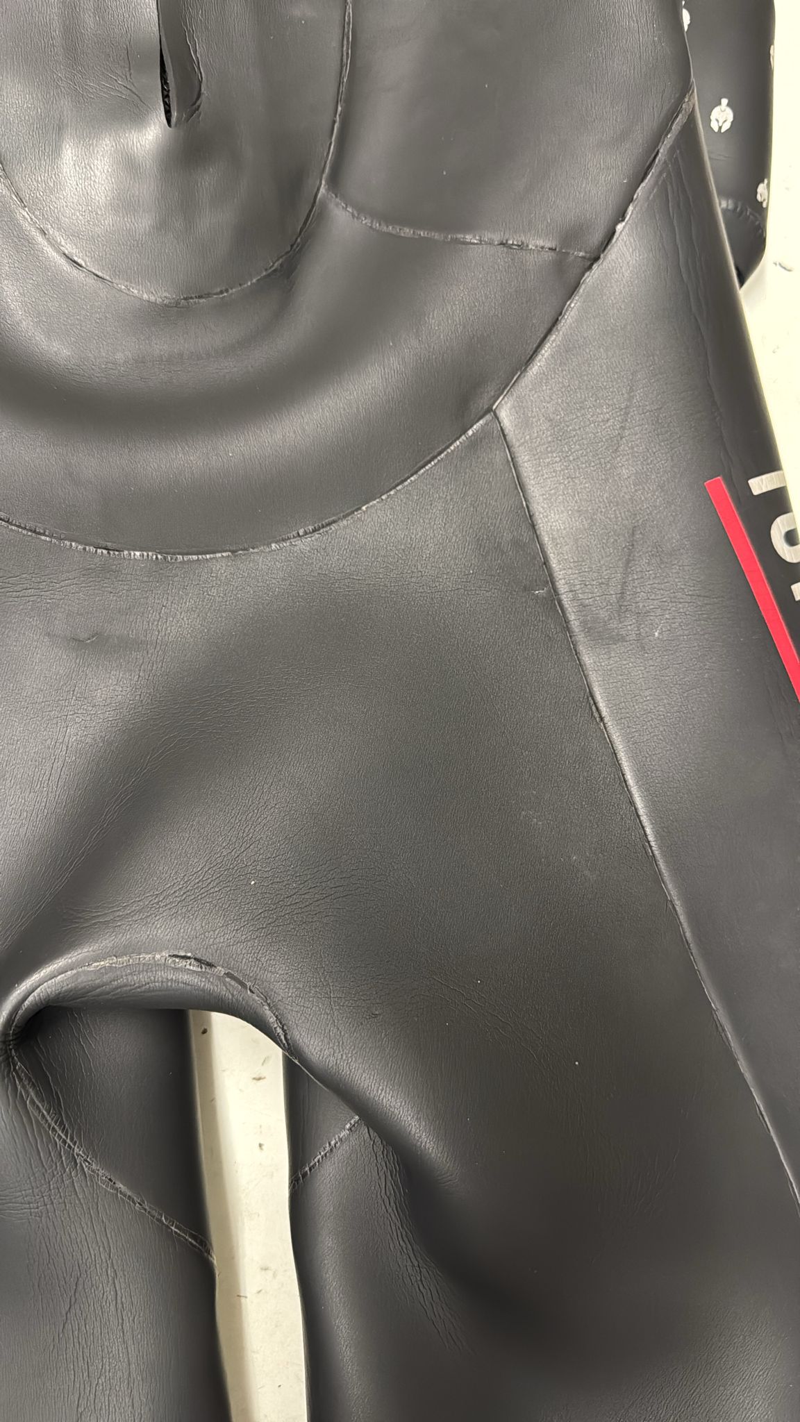Bitte beachten Sie: Es handelt sich um einen gebrauchten Demo-Neoprenanzug mit mehreren Beschädigungen durch Nägel: rechte Schulter, linke Brust, zwei Stellen am linken Arm, eine Stelle an der linken Hüfte, eine Stelle am rechten Oberschenkel, die Naht am linken Bein, zwei Stellen an der linken Seite und zwei Stellen am Gesäß. Die Beschädigungen sind auf den beigefügten Produktbildern zu sehen.