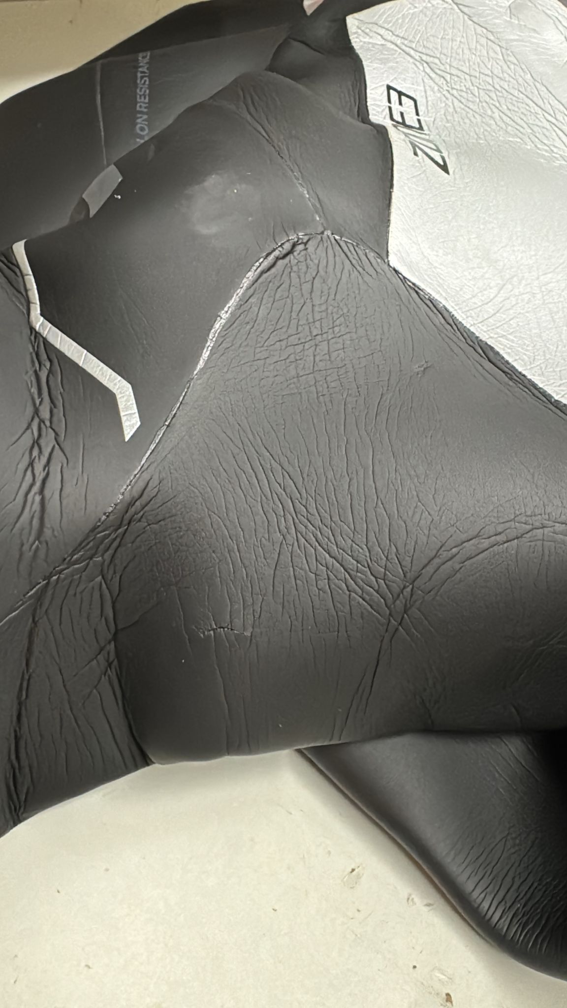 Bitte beachten: Dies ist ein Demo-/gebrauchter Neoprenanzug mit einem Nagelschaden an der rechten Achselhöhle, einem Nagelschaden an der linken Schulter und einem kleinen Loch am linken Arm. Die reparierten Nagelschäden am Neoprenanzug sind in den beigefügten Produktbildern zu sehen.